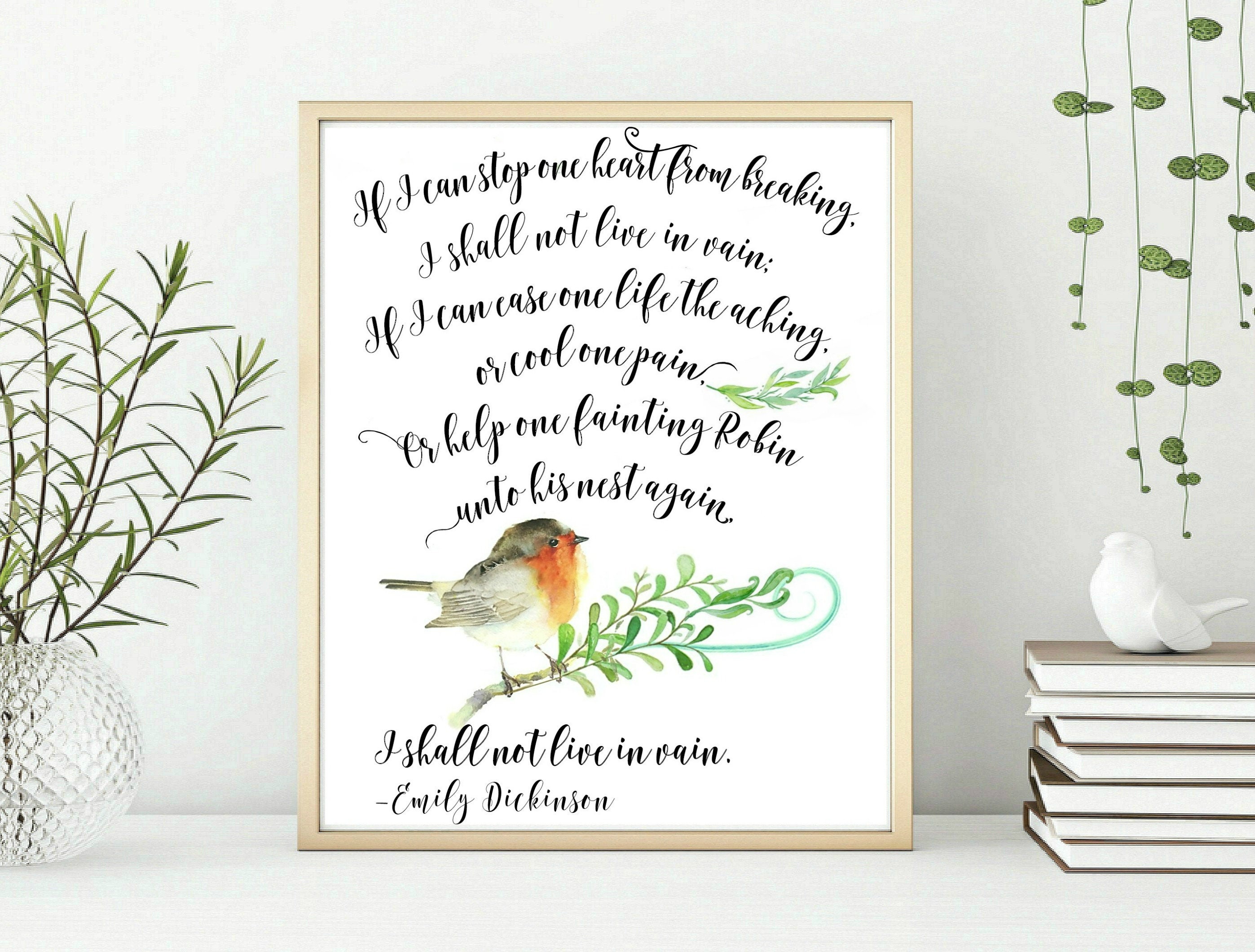 Give me the man who living makes a name. Emily Dickinson Quotes If I can stop one heart from breaking I shall not live in vain. If certain when this life was out That yours and mine should be I d toss it yonder like a rind And taste eternity.